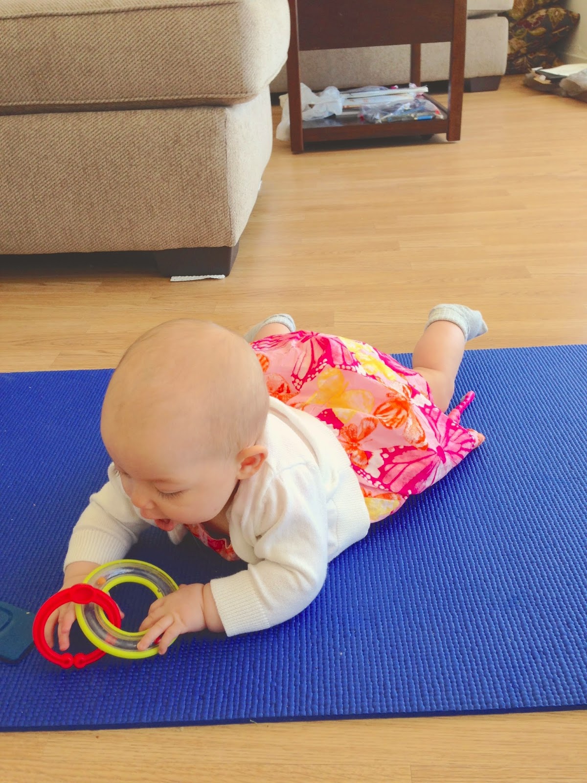 Two teeth have broken the surface within the past week and she has let us know with shouts and bursts of screaming! Yes, it's horrible and teething is my least favorite so far, but it hasn't been as horrible as I thought it was going to be. I guess I have to wait for those molars to come in to be able to own up to that. She has discovered the letter B and constantly rambles "baa-baa-baa-baa" all the time. When it's time for sleep, she says "da-da-da-da" in her crib until her little soul is asleep. So much is happening and so much change in so little time, but it makes ALL the memories so much sweeter, even the teething.